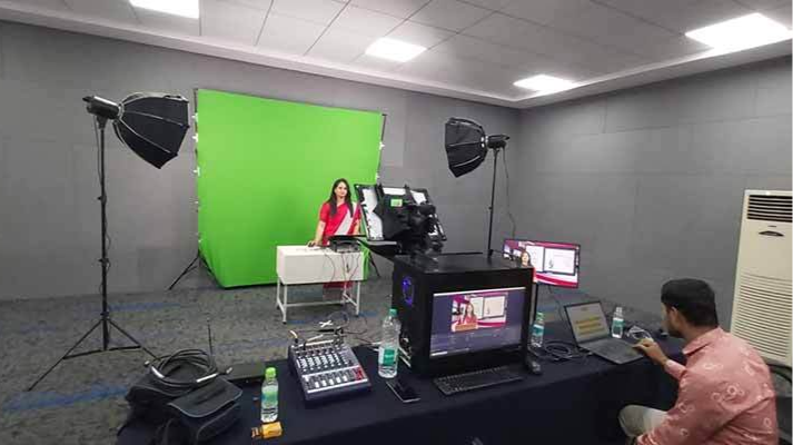 The fully functional studio is crafted with high-tech Audio/Video equipment and managed by trained